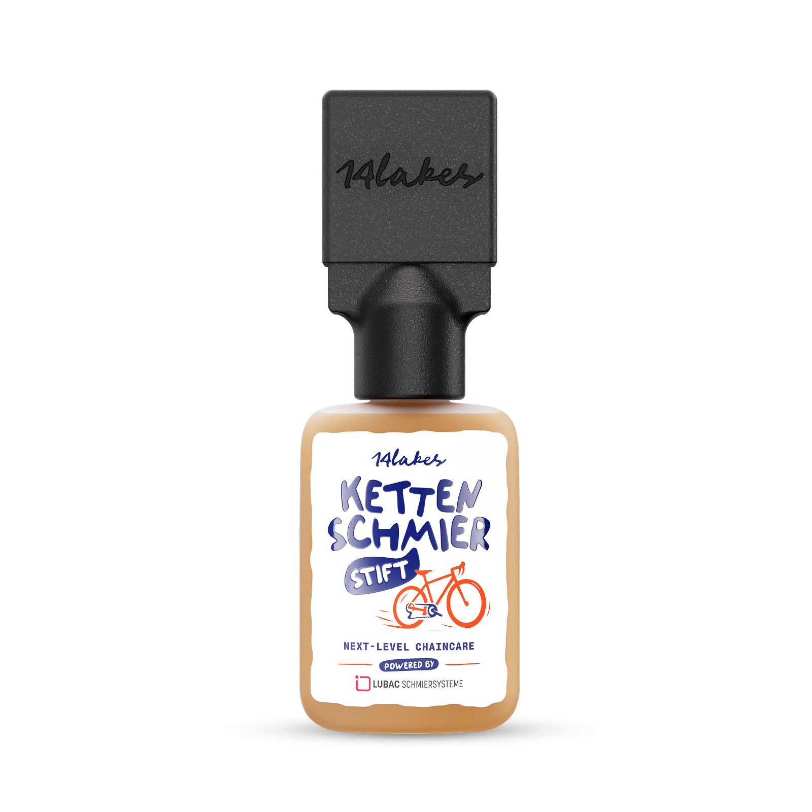 Der 14lakes Kettenschmierstift bringt deine Kette schnell, sauber und präzise in Topform. Ganz ohne Tropfen, Überschmieren oder Nachputzen. Der smarte Applikator trägt das Hochleistungsöl punktgenau auf, löst dabei Schmutz aus den Kettengliedern und schützt zuverlässig vor Verschleiß, Korrosion und Ablagerungen.